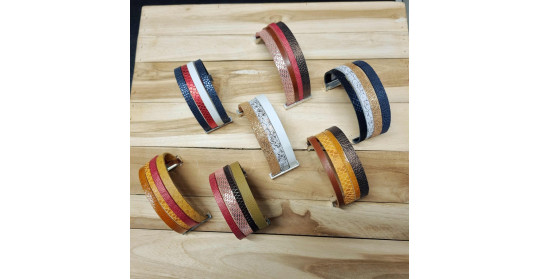 Des teintes naturelles et complémentaires qui font de cette manchette en cuir, un ensemble coloré et doux.