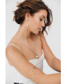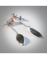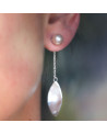 La particularité de cette paire de boucles d'oreilles? Le bijou est travaillé sur 2 niveaux : la perle et le pendant, fixé derrière le lobe, au fermoir poussette belge.