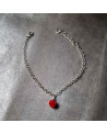 Bracelet pampille rose en bambou rouge en maille forçat de 3mm de diamètre et fermoir menotte 9mm.