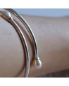 L'idée: revenir à l'essentiel avec le bracelet jonc! L'atelier Atours&Flore en a fait un bracelet ouvert, aux extrémités desquels sont fixées des perles de culture de forme ovale.