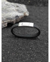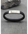 Bracelet en cuir plat noir, fermoir brossé en acier inoxydable. Fermoir sécurisé et facile d'utilisation.