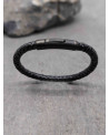 Bracelet en cuir rond noir et son fermoir noir mat en acier inoxydable. Fermoir simple d'utilisation et sécurisé.