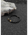 Bracelet Agate Noire Dépolie et succession de trois perles (Œil de Tigre, de faucon et de taureau) de 8mm de diamètre.
