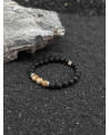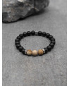 Bracelet Agate Noire dépolie et Bois Fossilisé dépoli de 8mm de diamètre.