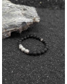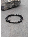 Bracelet Agate Noire dépolie et Jaspe paysage Gris de 8mm de diamètre.