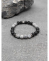 Bracelet Jaspe Paysage Gris et Pierre de lave de 8mm de diamètre.