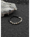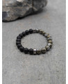 Bracelet Pyrite polie et Agate Noire dépolie de 8mm de diamètre.