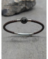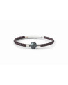 Bracelet en cuir tressé rond et perle de Tahiti Gravée main par un artisan de Polynésie.
