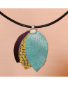 L'union du cuir et de l'argent! On mixe les matières avec ce collier dont la bélière a été créée spécifiquement pour s'adapter à la forme de ces trois feuilles en cuir.