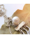 Ensemble créé en argent 950 millièmes. Le pendentif est accompagné d'un sautoir de 68cm créé en maille corde, une maille discrète qui laisse toute sa place au pendentif et sa perle.