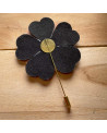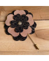 Fibule en cuir qui joue sur le contraste entre le cuir noir doré et le cuir nude.